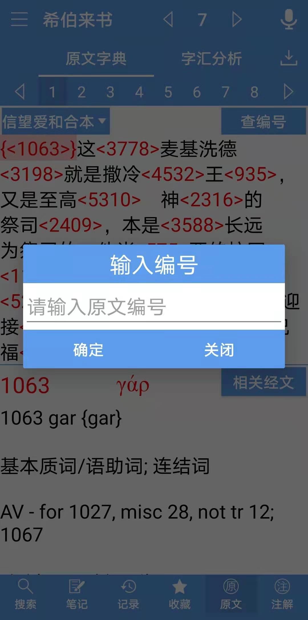 精读圣经的原文查经与微读圣经基本功能类似,但是有个“查编号”功能,是微读圣经没有的,这个功能还很有用。另外,这些原文注释是可以拷贝的,方便写文章。